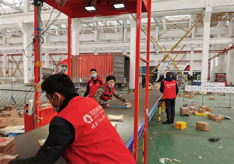無水港公司黨支部、經(jīng)營班子高度重視,立即召開會議安排部署,制定措施。臨時規(guī)劃、調(diào)劑出倉庫面積約2000㎡,用作申通、天天、天貓等 3家快遞企業(yè)的人工臨時分揀場地。2月16日,申通、天天、天貓超市3家快遞企業(yè)入駐無水港物流分撥中心,開放臨時分撥場所,保障疫情防控期間群眾日常生活需要。