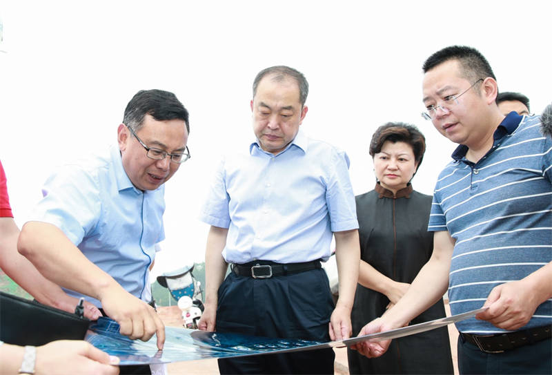 在雅安無(wú)水港鳳鳴物流園項(xiàng)目場(chǎng)平施工現(xiàn)場(chǎng),蘭開(kāi)馳聽(tīng)取了項(xiàng)目業(yè)主交建集團(tuán)黨委書(shū)記、董事長(zhǎng)漆家華的工作匯報(bào),詳細(xì)了解無(wú)水港物流項(xiàng)目規(guī)劃、建設(shè)進(jìn)展、業(yè)態(tài)布局等情況。