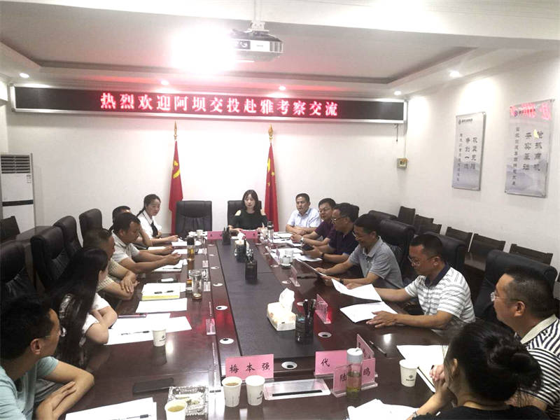 8月11日至12日,四川阿壩交通建設投資有限責任公司黨委書記、董事長李毅,黨委副書記、總經(jīng)理詹永康率隊到雅安考察交流交通建設相關事宜。雅安市交通運輸局黨組書記、局長余云峰,黨組成員、副局長趙飛勇;雅安交建集團黨委書記、董事長漆家華,黨委副書記、總經(jīng)理羅倫全等先后陪同考察、座談交流。