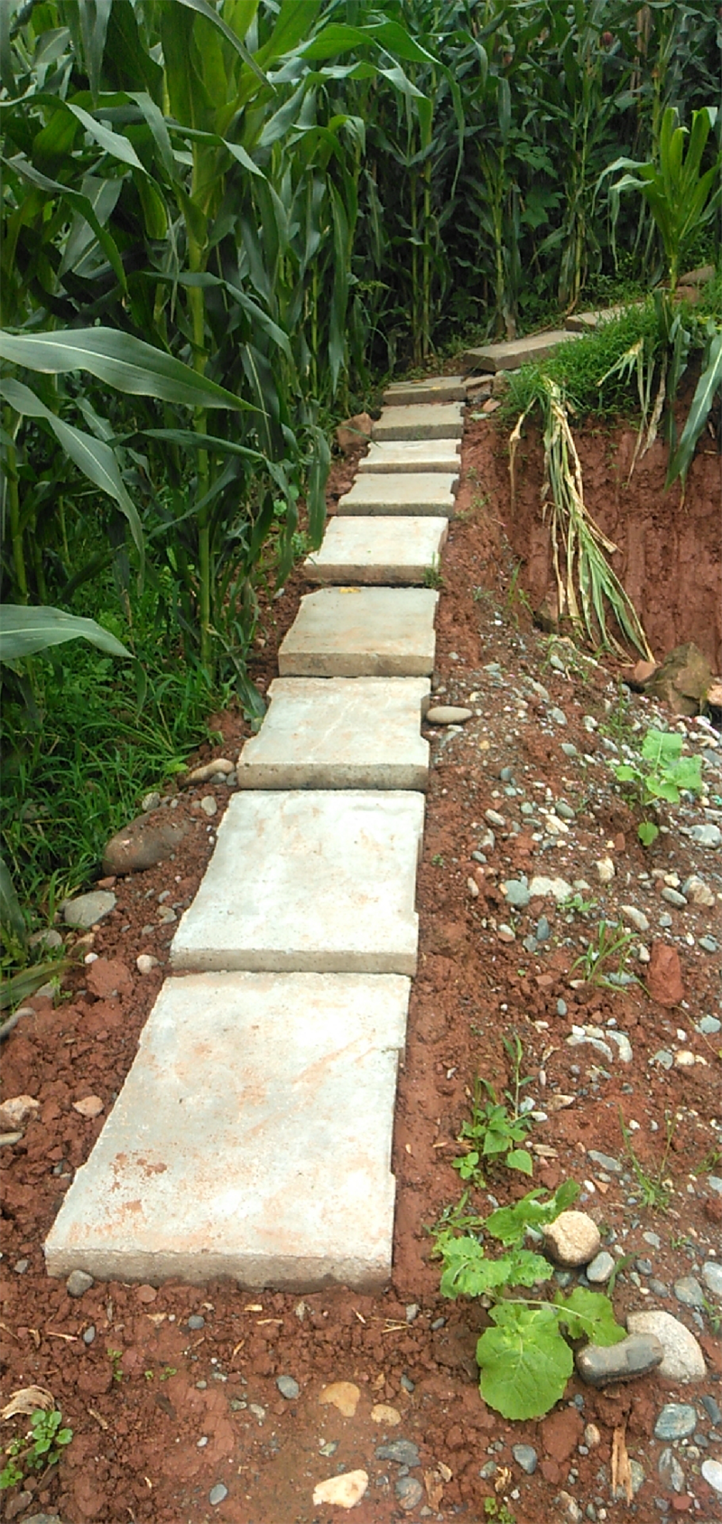 在蘆山縣佛圖山項(xiàng)目建設(shè)中,路橋公司蘆山寶興片區(qū)臨時(shí)黨支部了解到此處有一段便道坑洼不平,遇到雨季道路泥濘,嚴(yán)重影響村民的生活和生產(chǎn),且存在一定的安全隱患。為此,臨時(shí)黨支部主動(dòng)提出要為群眾修補(bǔ)便道,原本只是一個(gè)帶斜角的陡坡,通過(guò)加蓋水泥預(yù)制板臺(tái)階,便道變得平整起來(lái)。考慮到出行的方便性,還將便道與通村馬路連接在一起,受到當(dāng)?shù)匕傩盏母叨荣潛P(yáng),群眾出行難題得到有效解決。