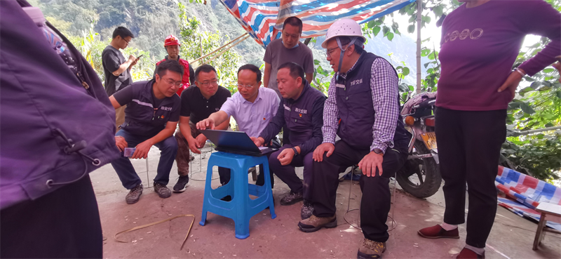 和坪村兩組400余名群眾,遍布于縣道X073兩側。為全覆蓋掌握該村道路分布、垮塌點位和房屋分布情況,交建集團發(fā)揮技術優(yōu)勢,集團黨委書記、董事長漆家華一線督導、多方協調,組織5名相關專業(yè)技術人員,累計徒步跋涉20余小時,從6個點位實施無人機多角度航拍,累計拍攝照片1300余張,全覆蓋制作360°實景圖。并結合走訪入戶情況,對全村137處村民房屋進行精準定位,繪制具體房屋布置圖,為市縣包保工作組精準開展工作提供有力的技術支撐。