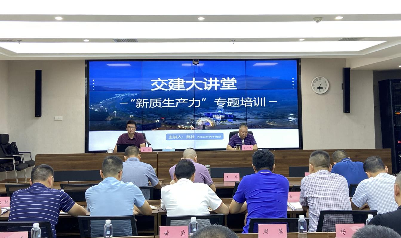 此次專題培訓邀請西南財經大學經濟學院教授、博士生導師苗壯同志授課,集團領導班子及中層以上干部參訓。苗教授從新質生產力的的提出背景入手,全面系統(tǒng)闡釋了新質生產力的重大意義、豐富內涵和發(fā)展趨勢,并結合交通領域的傳統(tǒng)產業(yè)、新興產業(yè)和未來產業(yè),從智改數(shù)轉賦能、綠色發(fā)展共享等領域進行了詳盡闡釋。專家的整場輔導站位高遠、視野寬廣、內涵豐富,既有宏觀政策指引,也有實操借鑒經驗,讓參訓干部受益良多。