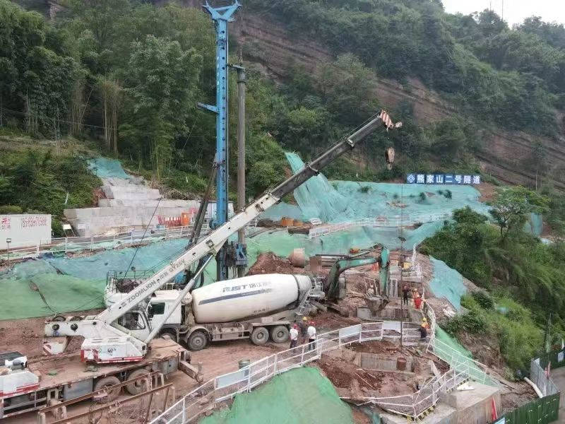 “咚咚咚……”在雨城區(qū)多營鎮(zhèn)五營村熊家山二號(hào)隧道出口端空地上,旋挖鉆機(jī)開足馬力,朝著地層深處掘進(jìn),不斷發(fā)出富有節(jié)奏的聲響!懊總(gè)樁基有二十多米深!眹318線名山區(qū)黑竹(成都界)至雨城區(qū)多營段改建工程項(xiàng)目副經(jīng)理林洲,每天都要到各施工點(diǎn)位查看進(jìn)度。他說,熊家山二號(hào)隧道附近山體為順層帶,易產(chǎn)生滑坡,進(jìn)洞施工前需要先在洞外打抗滑樁,以確保施工安全,目前還在開展剩下3根抗滑樁的施工。