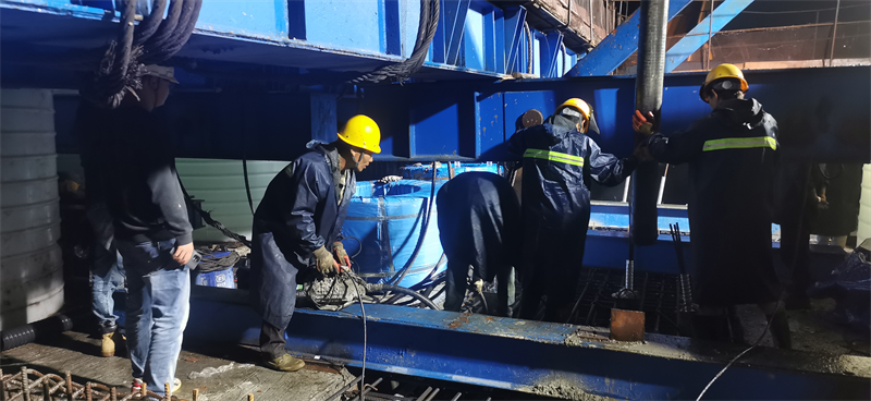 由于中跨合攏段施工要求高,我司于9月10日就開始右幅中跨合攏段鋼筋制作工作。工地現(xiàn)場(chǎng)實(shí)測(cè)最高溫47攝氏度,而混凝土須低于30攝氏度澆筑才能確保質(zhì)量。為此,項(xiàng)目部將一線施工作業(yè)時(shí)間進(jìn)行了調(diào)整,避開了10:00至16:30的高溫時(shí)段,選在溫度偏低的夜間進(jìn)行施工。項(xiàng)目部人員全力以赴與時(shí)間賽跑,與天氣斗爭(zhēng),于9月17日23點(diǎn)開始進(jìn)行混凝土澆筑,經(jīng)過(guò)徹夜奮戰(zhàn)于凌晨2點(diǎn)30分完成合攏段全部施工,有效保證了合攏段施工質(zhì)量。