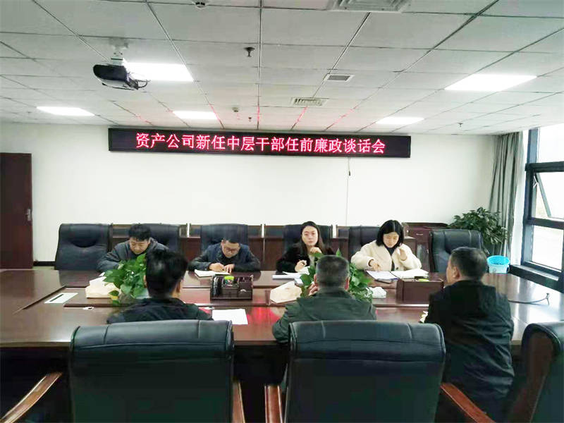 2019年11月22日,資產公司執(zhí)行董事、總經理王華組織新任職4位中層干部開展任前廉政談話。副總經理謝玉芳、項目總工吳仕雄參加談話。