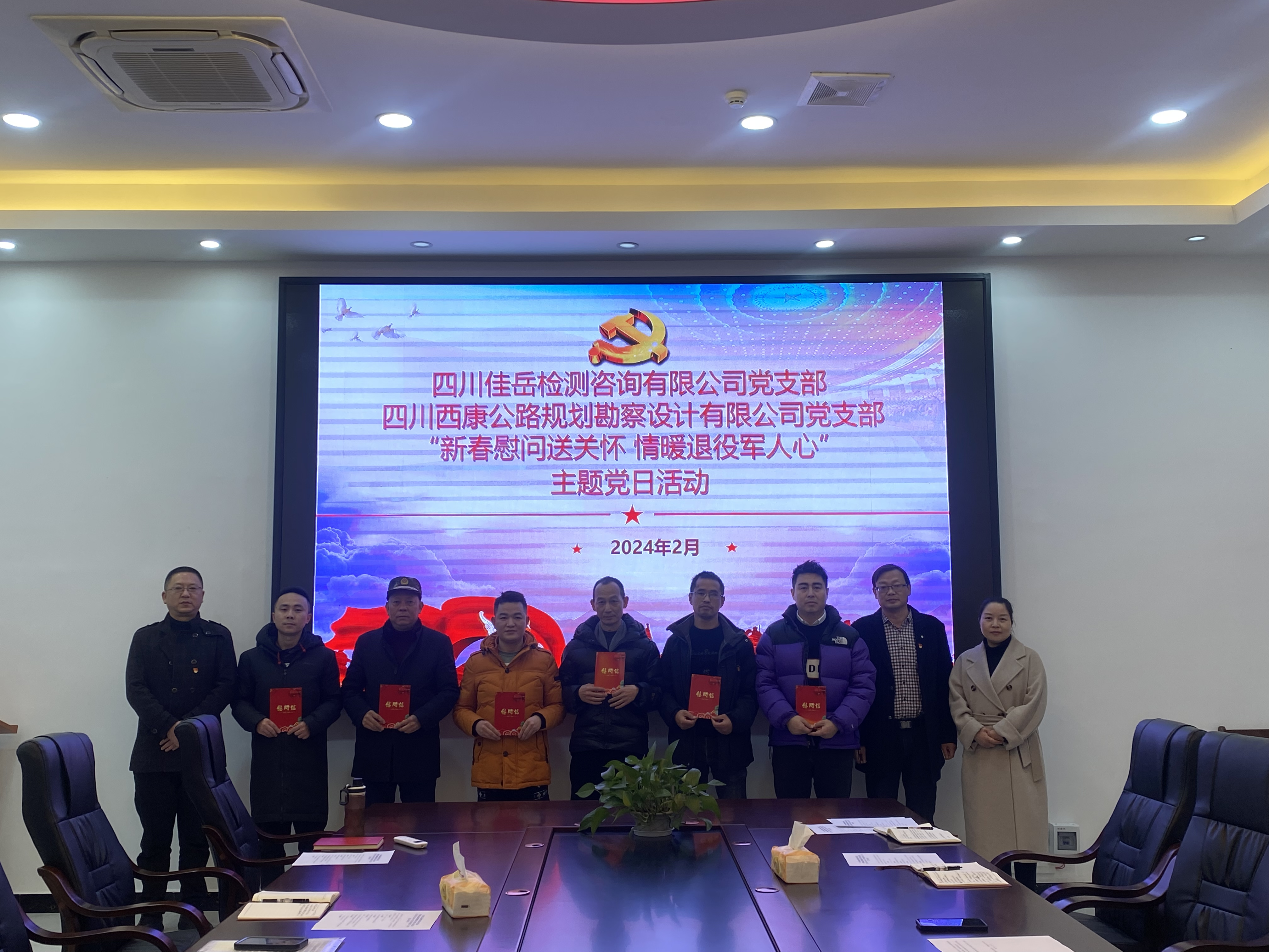 為推動(dòng)第二批主題教育走深走實(shí)、取得成效,2月2日,佳岳檢測(cè)公司黨支部聯(lián)合勘察設(shè)計(jì)公司黨支部開(kāi)展“新春慰問(wèn)送關(guān)懷 情暖退役軍人心”主題黨日活動(dòng),為退役軍人送上黨的溫暖關(guān)懷,提前向他們致以節(jié)日的問(wèn)候和美好的祝福。