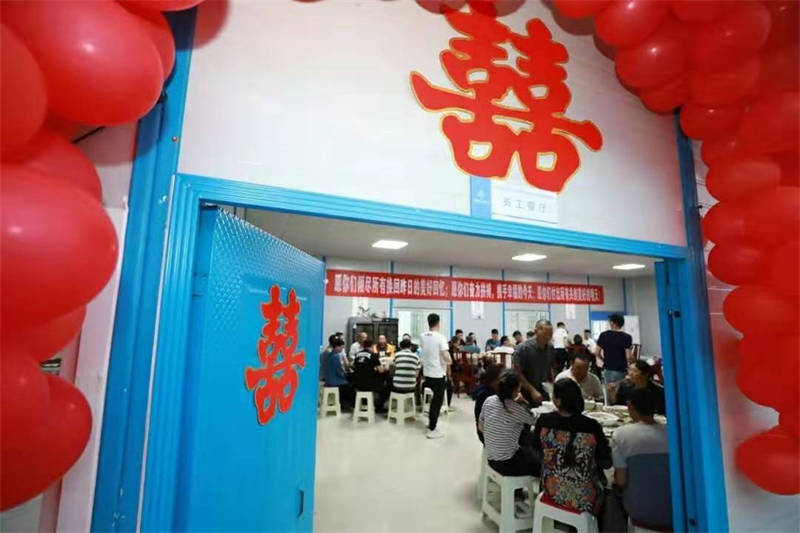 張萬清在致辭中表示,4對新人5月20日領證,5月21日舉行婚禮。這不僅展現(xiàn)了現(xiàn)在年輕夫妻一起吃苦、共同奮斗的優(yōu)秀品格和追求幸福的急迫心情,也展現(xiàn)出我們項目部的高效率。雖然今天的婚禮殿堂很簡陋,沒有婚紗,也沒有禮服,但是有我們所有工友的美好祝福。最后祝愿4對新人百年好合、永結同心,在交通集團這個大家庭里,互相幫助、互相支持、共創(chuàng)輝煌的事業(yè)。