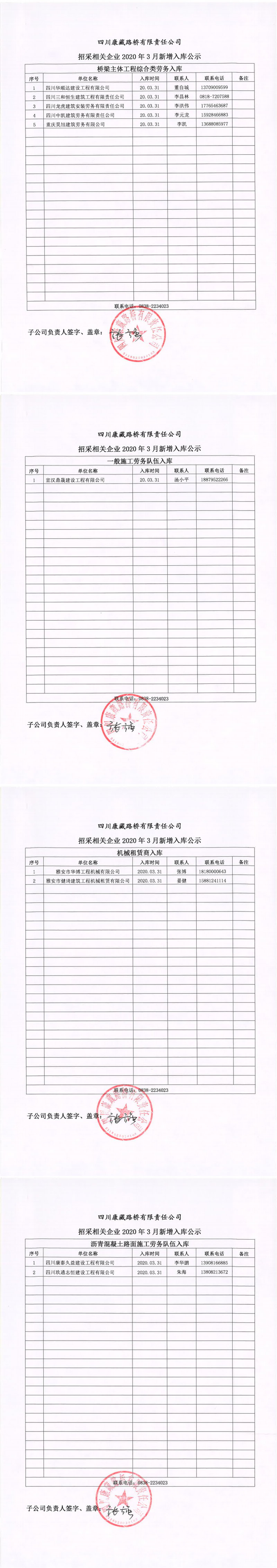 四川康藏路橋有限責(zé)任公司招采相關(guān)企業(yè)2020年3月新增入庫(kù)公示