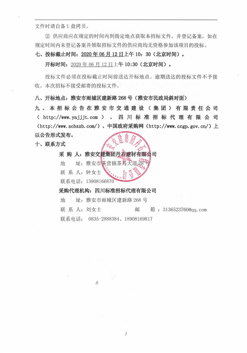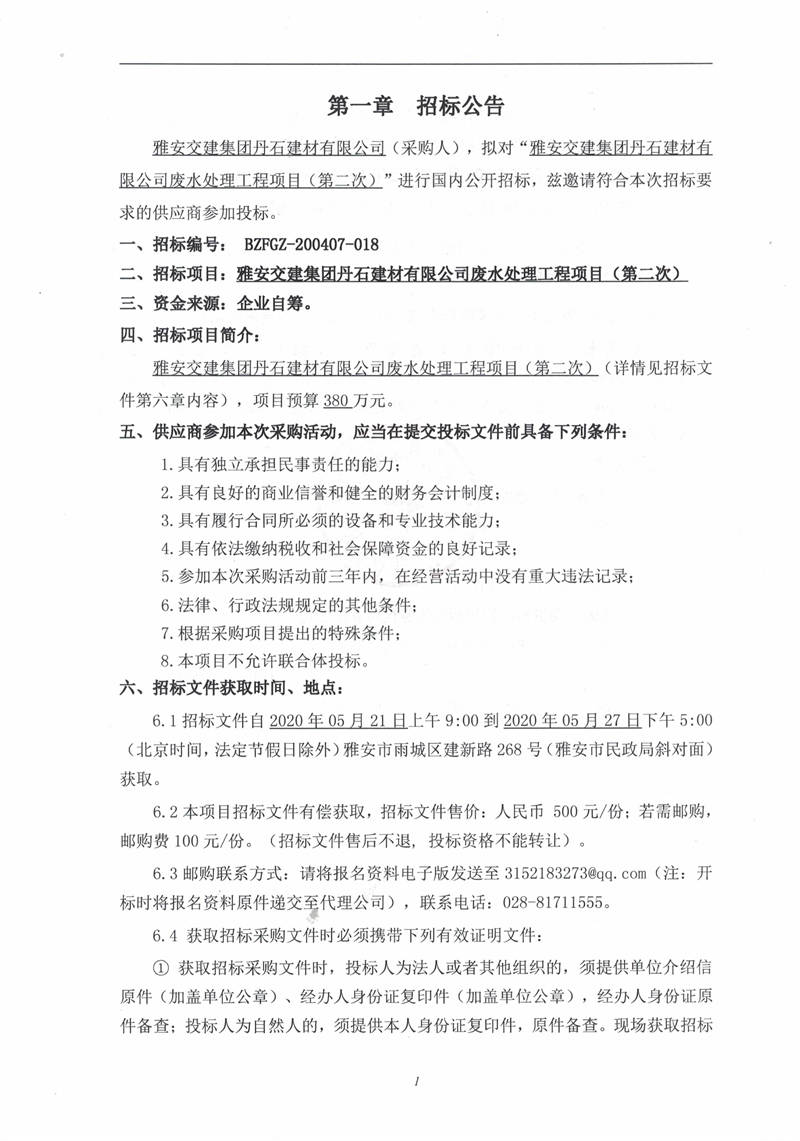 雅安交建集團(tuán)丹石建材有限公司廢水處理工程項目(第二次)招標(biāo)公告