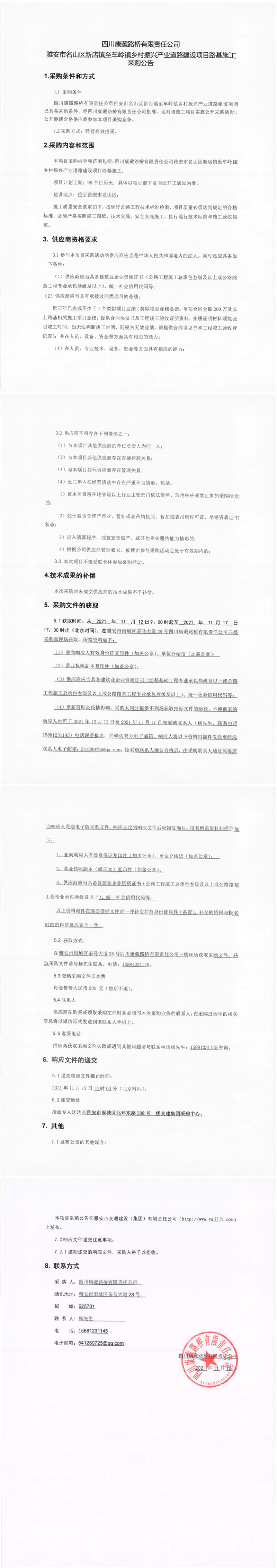 四川康藏路橋有限責(zé)任公司雅安市名山區(qū)新店鎮(zhèn)至車(chē)嶺鎮(zhèn)鄉(xiāng)村振興產(chǎn)業(yè)道路建設(shè)項(xiàng)目路面施工采購(gòu)公告