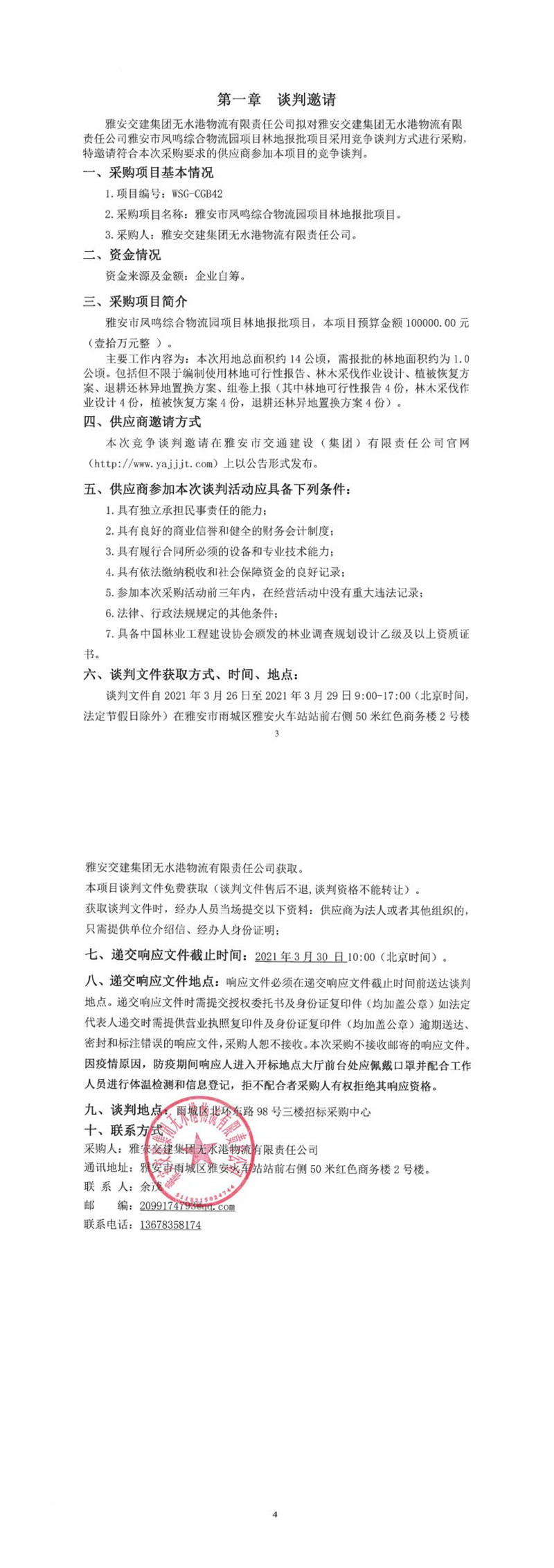 雅安交建集團(tuán)無(wú)水港物流有限責(zé)任公司雅安市鳳鳴綜合物流園項(xiàng)目林地報(bào)批項(xiàng)目競(jìng)爭(zhēng)談判公告