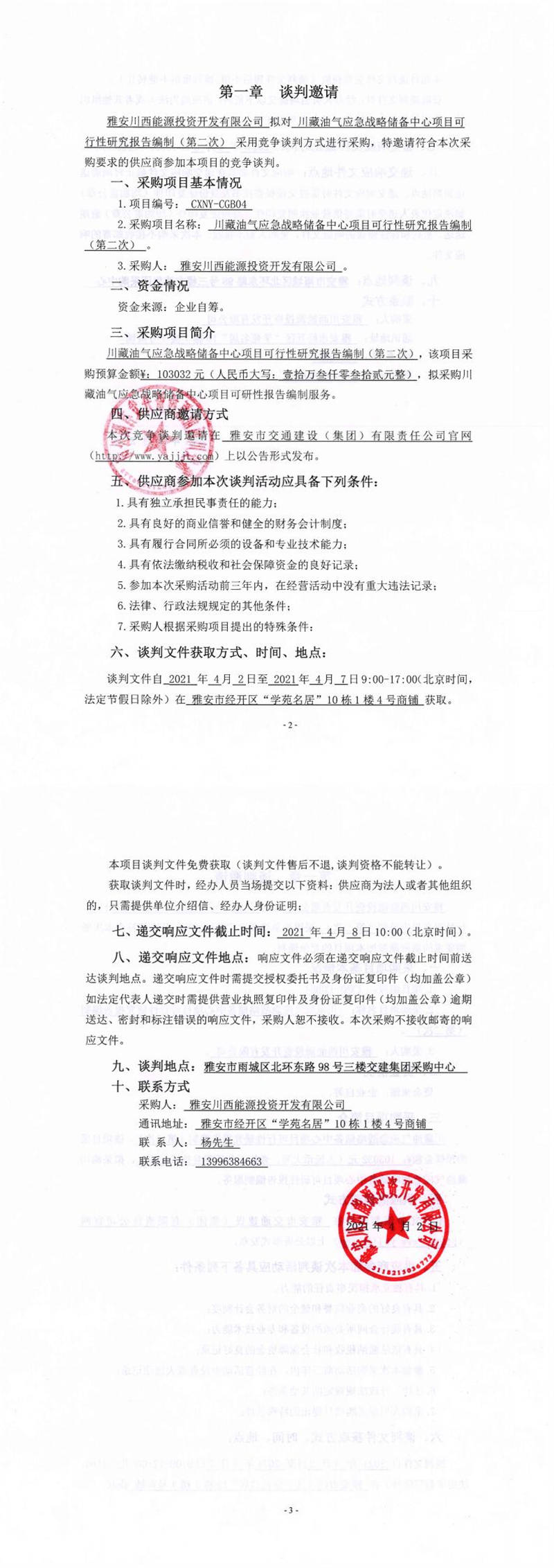 雅安川西能源投資開發(fā)有限公司川藏油氣應(yīng)急戰(zhàn)略儲備中心項(xiàng)目可行性研究報(bào)告編制(第二次)競爭談判公告