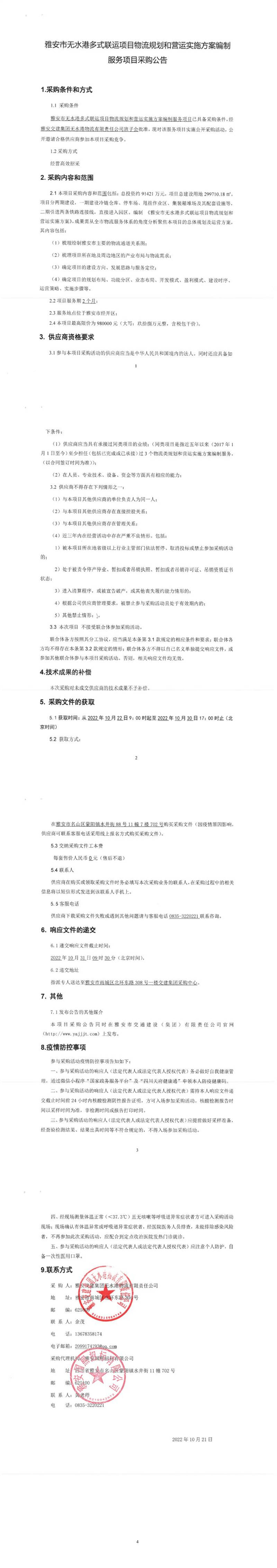 雅安交建集團無水港物流有限責任公司雅安市無水港多式聯(lián)運項目物流規(guī)劃和營運實施方案編制服務(wù)項目采購公告