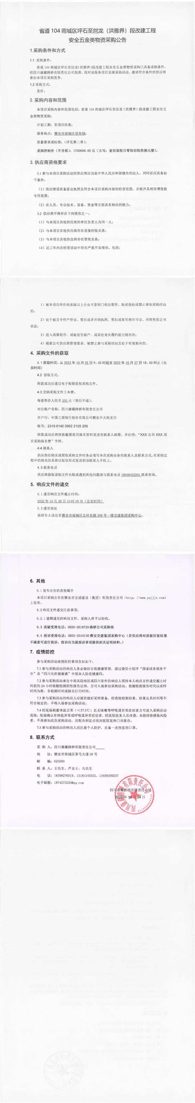 四川康藏路橋有限責(zé)任公司省道104雨城區(qū)坪石至回龍(洪雅界)段改建工程安全五金類物資采購(gòu)公告