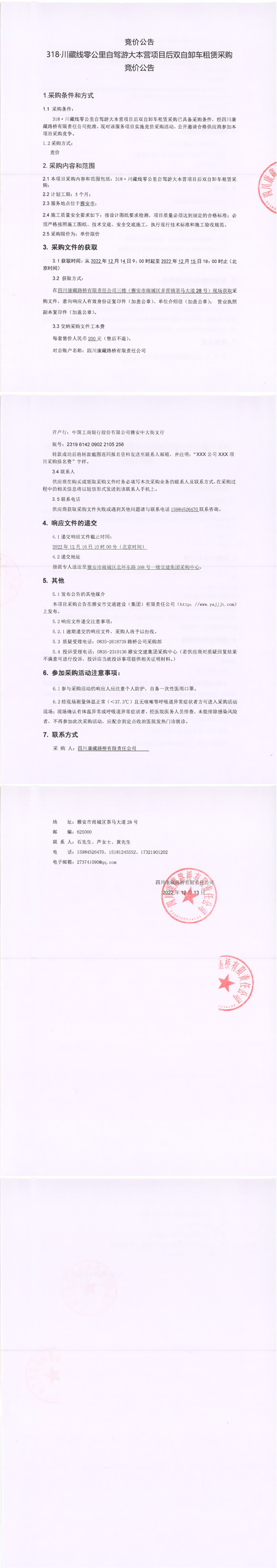 四川康藏路橋有限責(zé)任公司318.川藏線零公里自駕游大本營項目后雙自卸車租賃采購競價公告