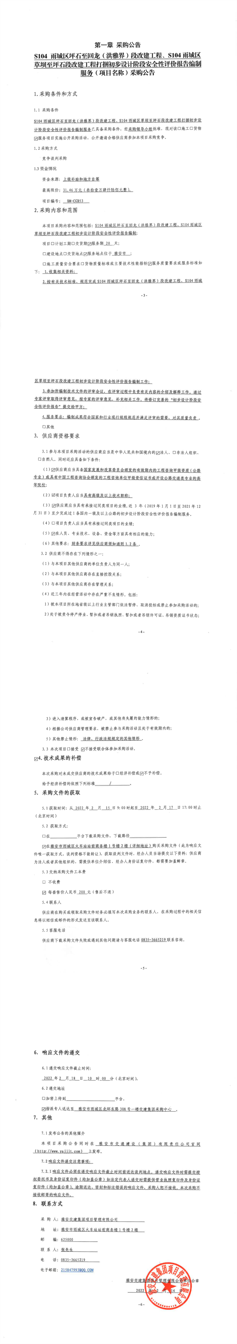 雅安交建集團(tuán)項(xiàng)目管理有限公司S104雨城區(qū)坪石至回龍(洪雅界)段改建工程、S104雨城區(qū)草壩至坪石段改建工程打捆初步設(shè)計(jì)階段安全性評價報(bào)告編制服務(wù)采購公告