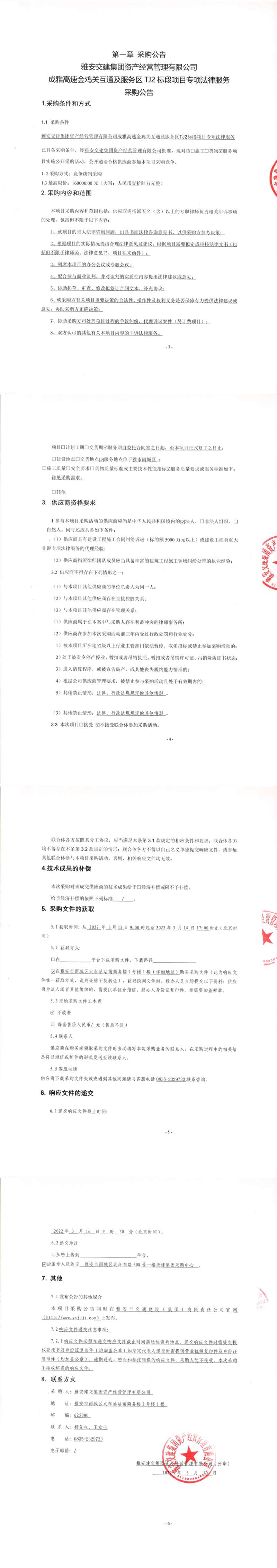 雅安交建集團(tuán)資產(chǎn)經(jīng)營(yíng)管理有限公司成雅高速金雞關(guān)互通及服務(wù)區(qū)TJ2標(biāo)段項(xiàng)目專項(xiàng)法律服務(wù)采購(gòu)公告