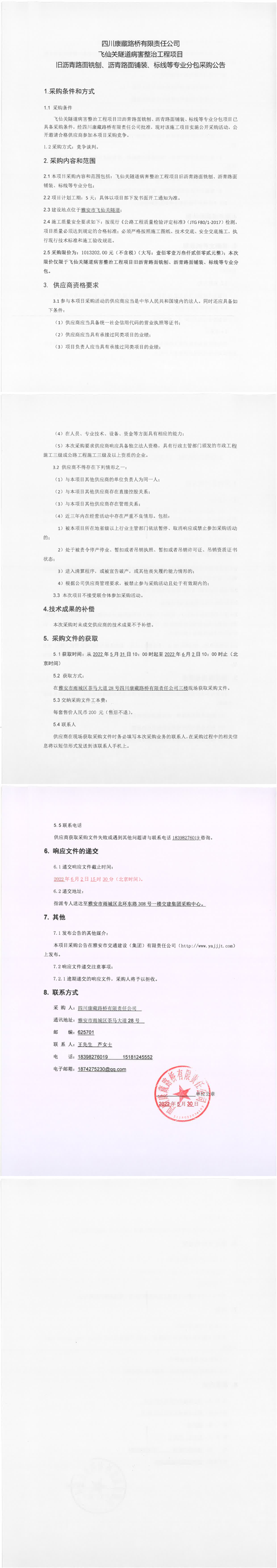 四川康藏路橋有限責(zé)任公司飛仙關(guān)隧道病害整治工程項目舊瀝青路面銑刨、瀝青路面鋪裝、標線等專業(yè)分包采購公告