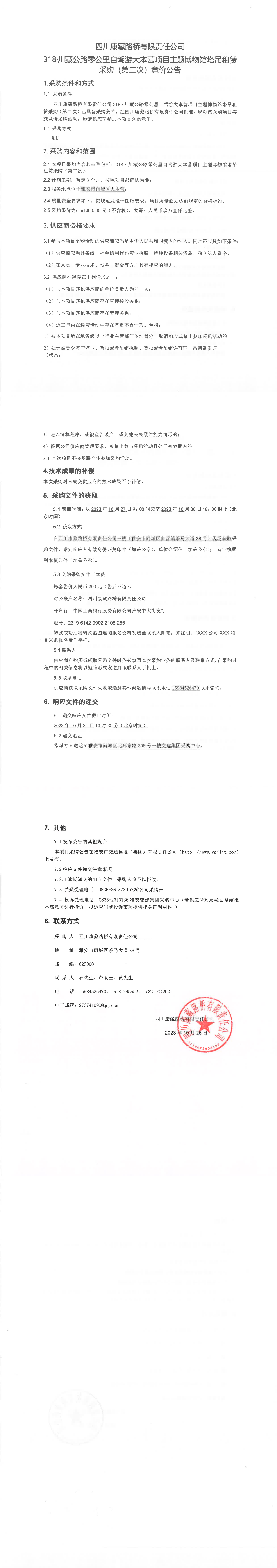 四川康藏路橋有限責(zé)任公司318·川藏公路零公里自駕游大本營項(xiàng)目主題博物館塔吊租賃(第二次)采購競價(jià)公告