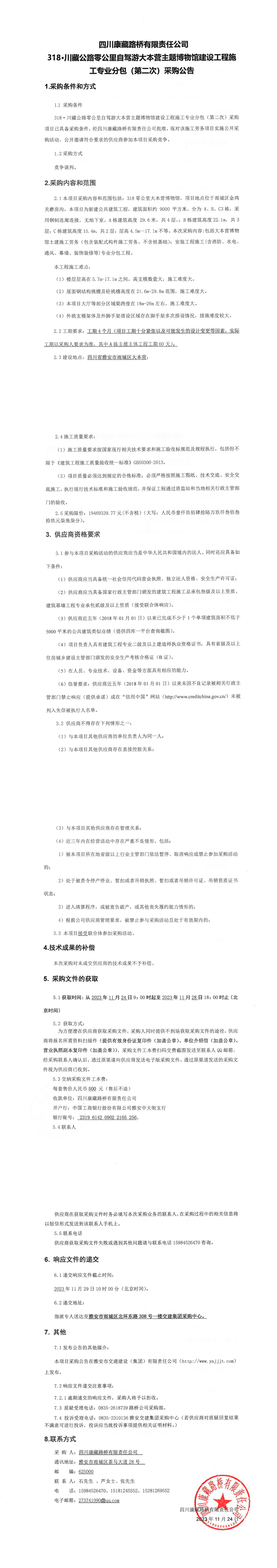 四川康藏路橋有限責任公司318·川藏公路零公里自駕游大本營主題博物館建設工程施工專業(yè)分包(第二次)采購公告