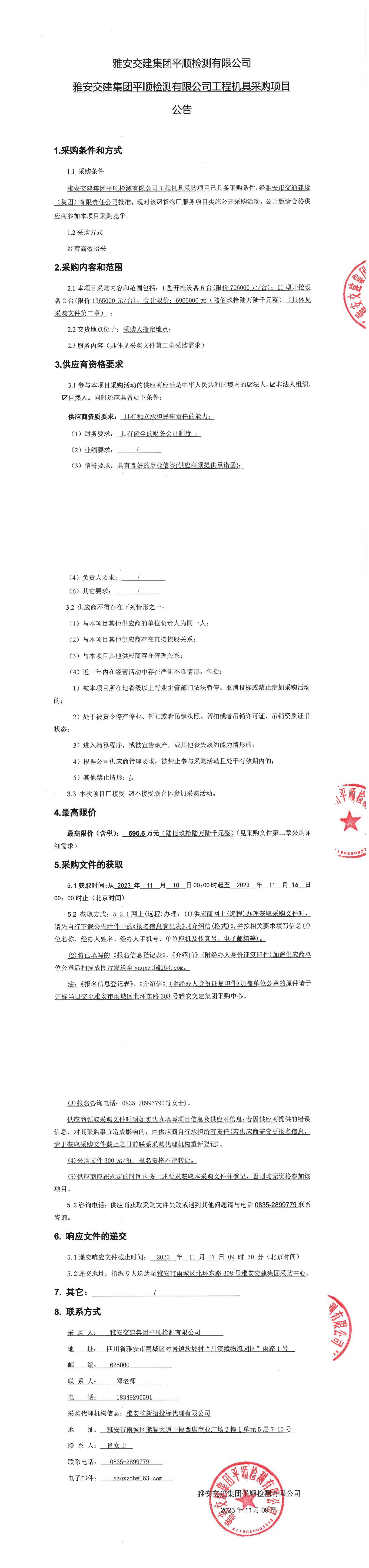 雅安交建集團(tuán)平順檢測有限公司工程機具采購項目公告