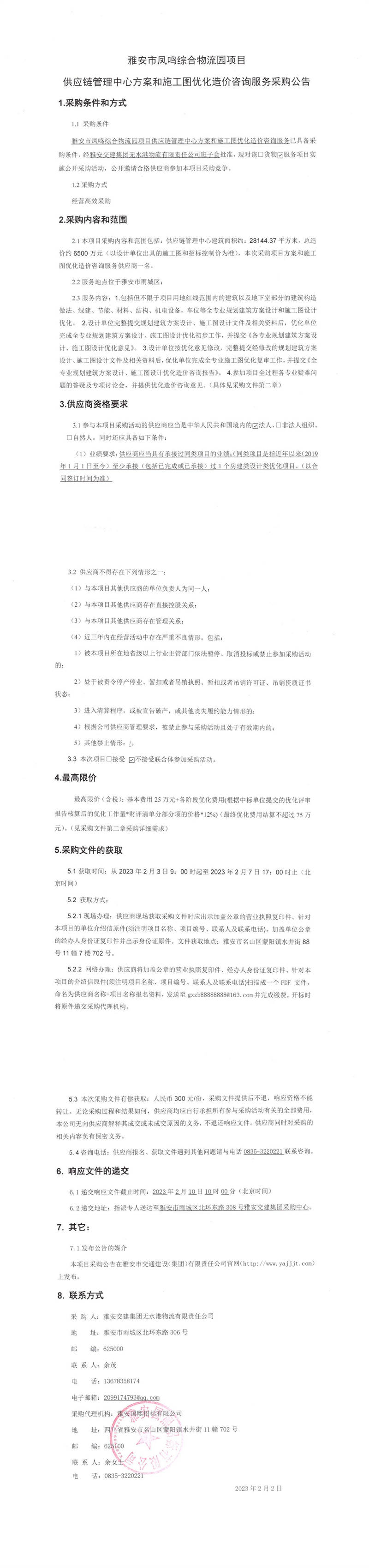 雅安交建集團(tuán)無水港物流有限責(zé)任公司雅安市鳳鳴綜合物流園項(xiàng)目供應(yīng)鏈管理中心方案和施工圖優(yōu)化造價(jià)咨詢服務(wù)采購公告