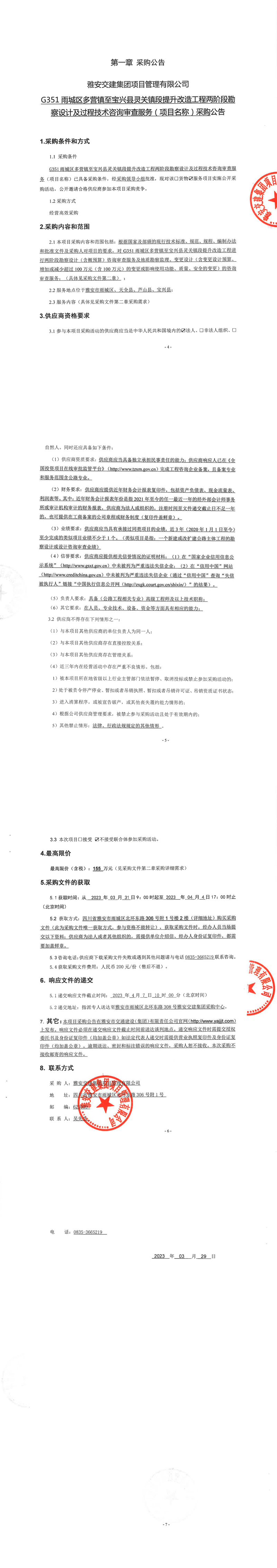 雅安交建集團項目管理有限公司G351雨城區(qū)多營鎮(zhèn)至寶興縣靈關鎮(zhèn)段提升改造工程兩階段勘察設計及過程技術咨詢審查服務(項目名稱)采購公告