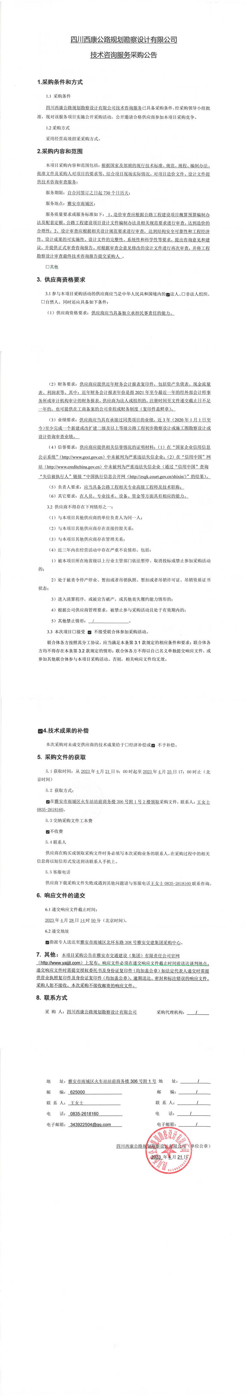 四川西康公路規(guī)劃勘察設(shè)計(jì)有限公司技術(shù)服務(wù)采購公告