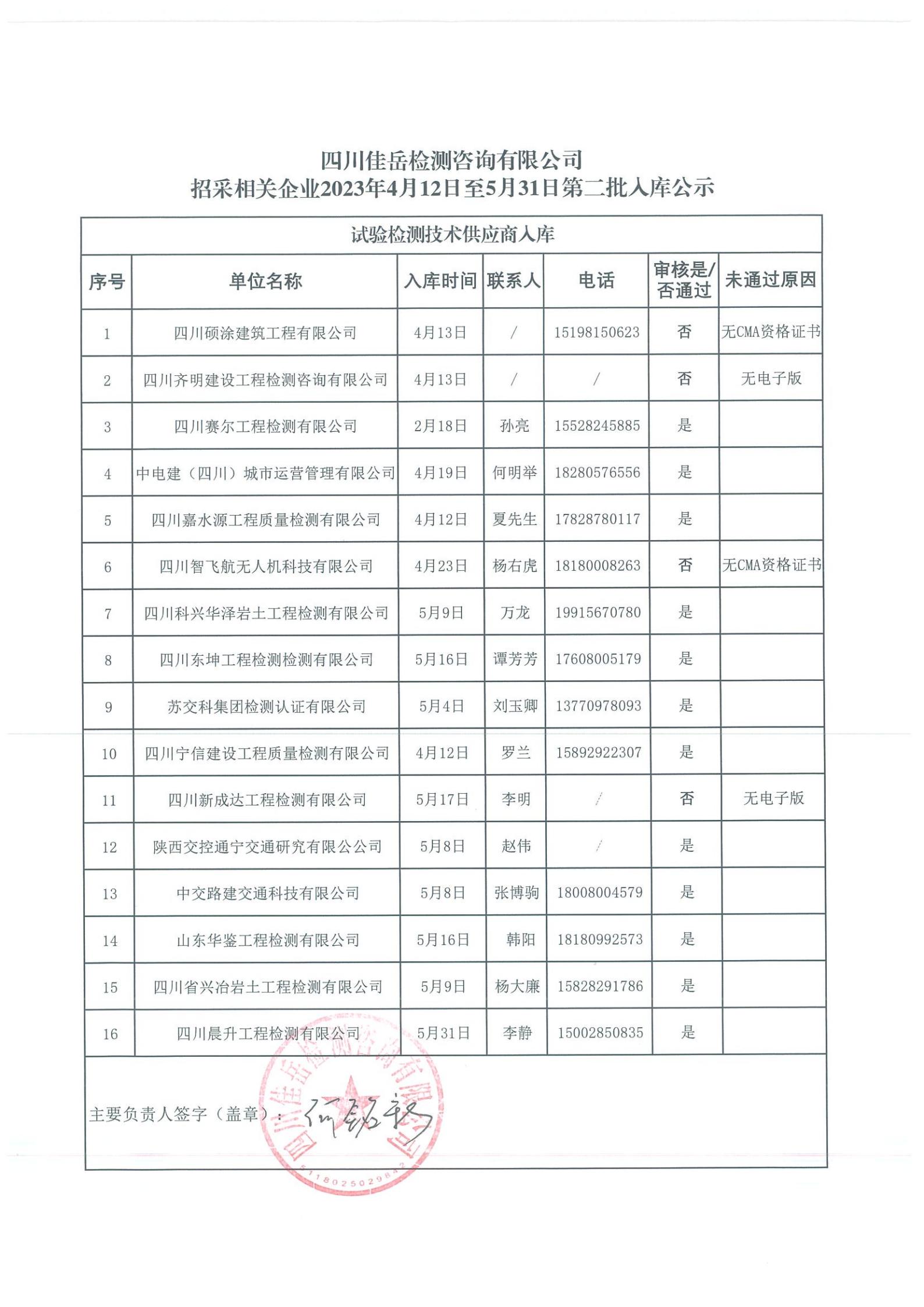 四川佳岳檢測咨詢有限公司(試驗檢測技術(shù)供應(yīng)商庫)2023年4月12日至5月31日第二批入庫結(jié)果公示
