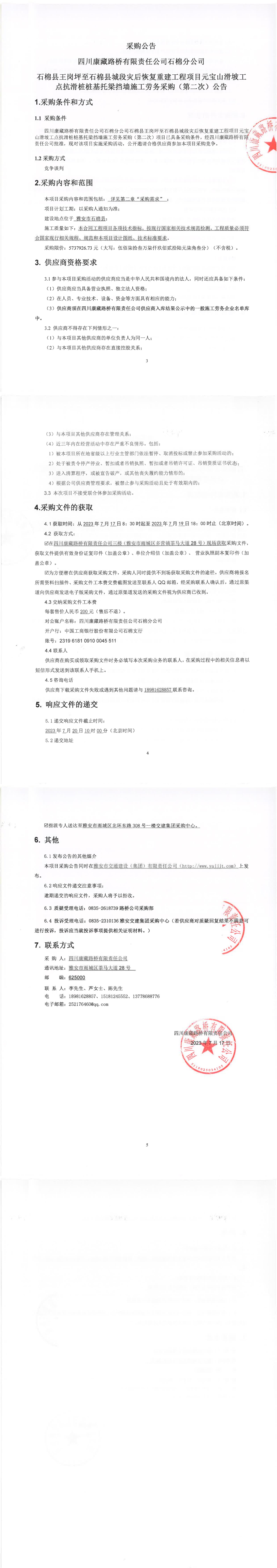 四川康藏路橋有限責(zé)任公司石棉分公司石棉縣王崗坪至石棉縣城段災(zāi)后恢復(fù)重建工程項目元寶山滑坡工點抗滑樁樁基托梁擋墻施工勞務(wù)采購(第二次)公告