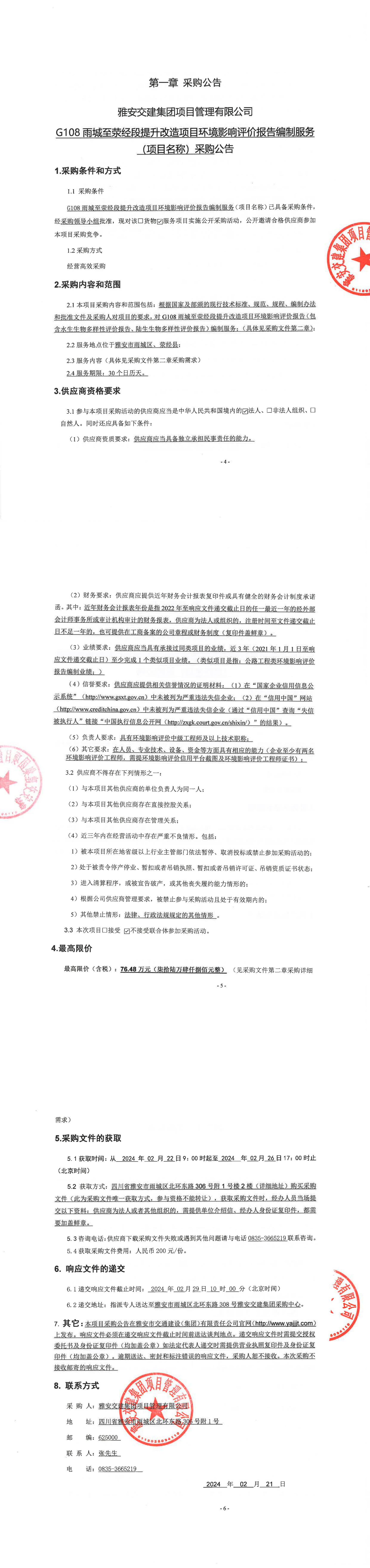 雅安交建集團項目管理有限公司G108雨城至滎經(jīng)段提升改造項目環(huán)境影響評價報告編制服務(wù)(項目名稱)采購公告