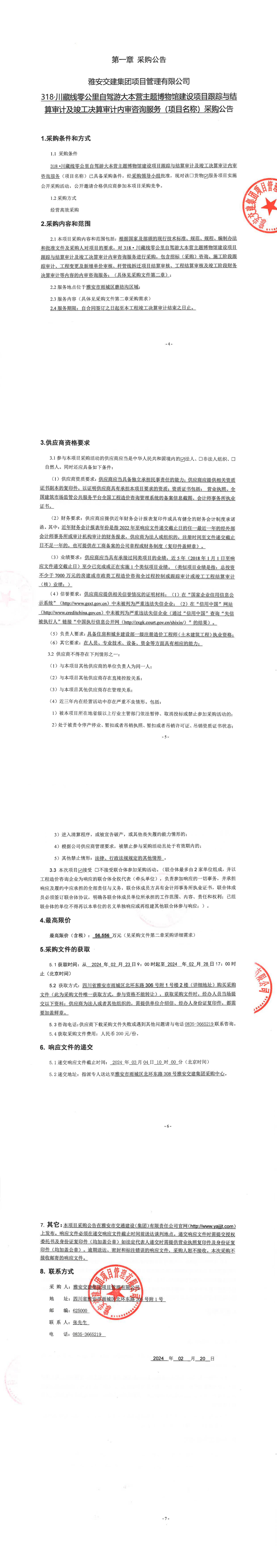 雅安交建集團項目管理有限公司318·川藏線零公里自駕游大本營主題博物館建設項目跟蹤與結算審計及竣工決算審計內(nèi)審咨詢服務采購公告