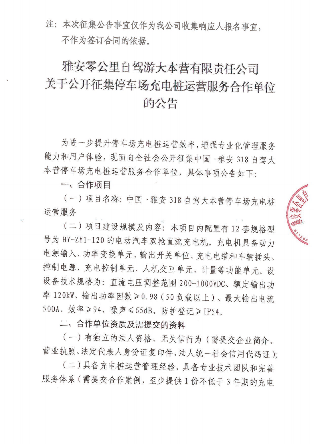 關(guān)于公開征集停車場(chǎng)充電樁運(yùn)營服務(wù)合作單位的公告