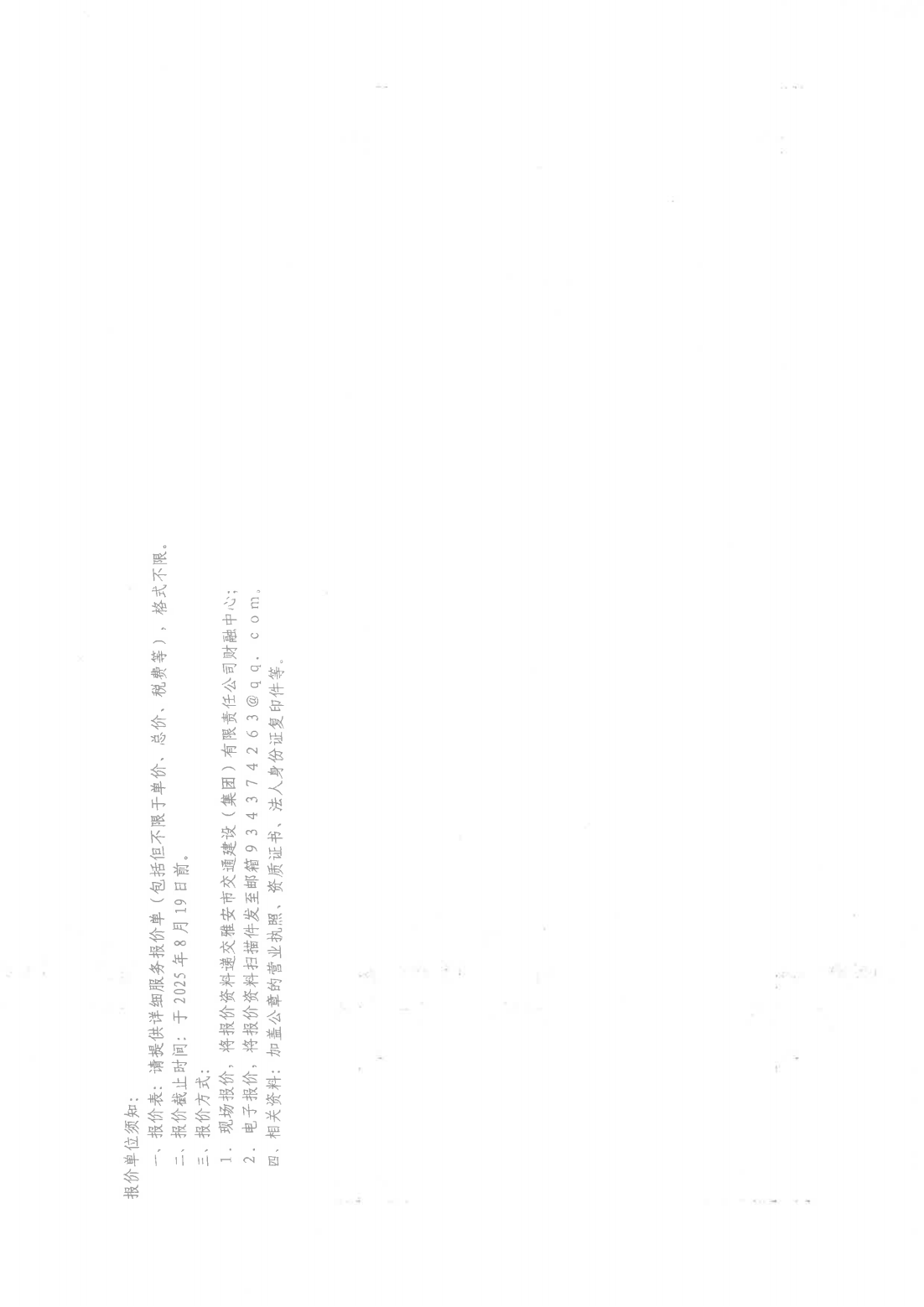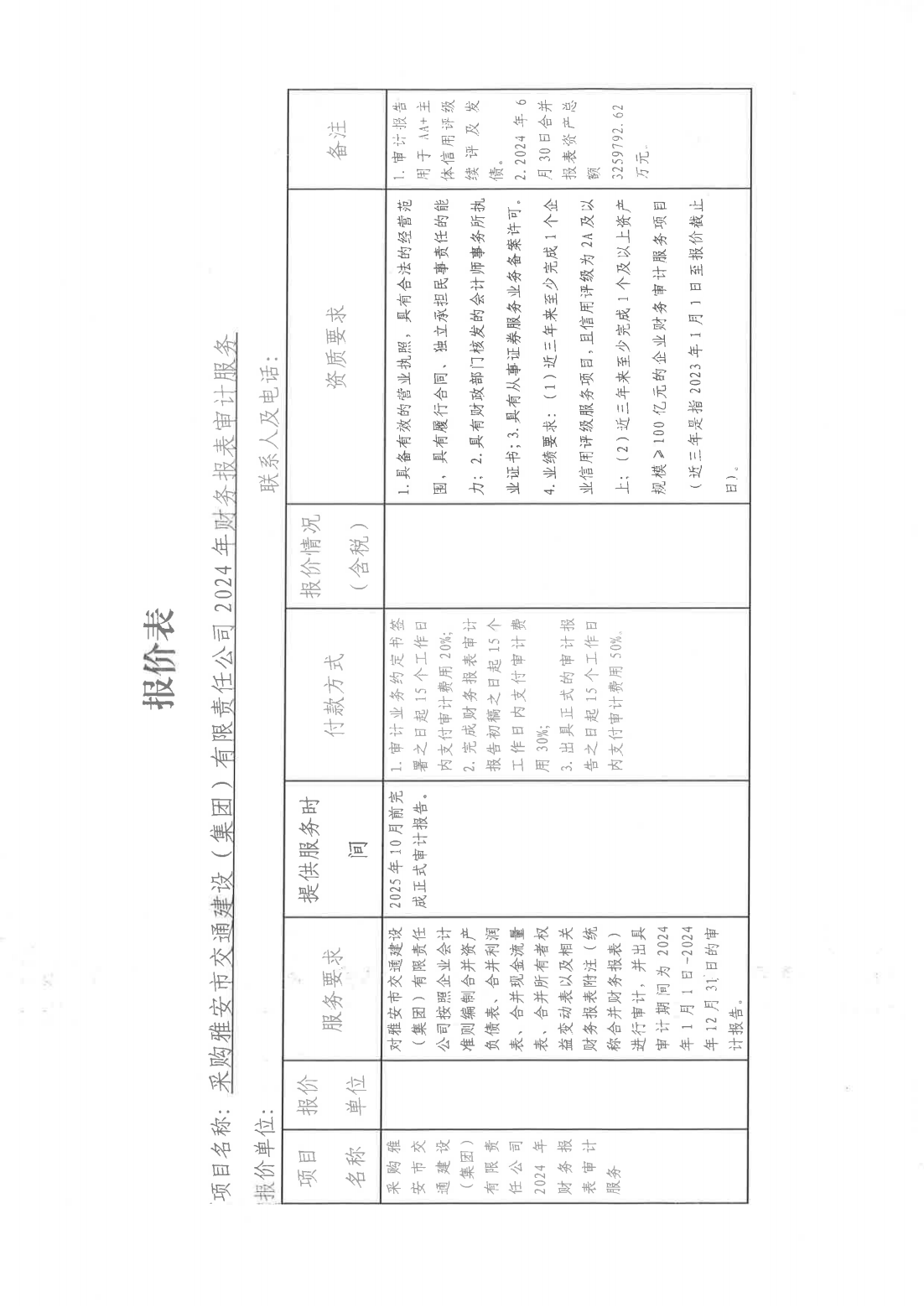 關(guān)于采購雅安市交通建設(shè)(集團)有限責(zé)任公司主體信用評級2024年財務(wù)報表審計服務(wù)單位的詢價函