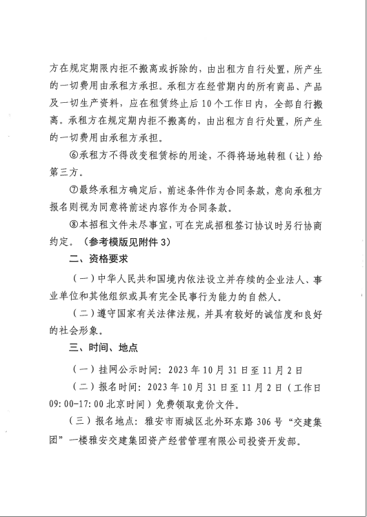 雅安交建集團資產(chǎn)經(jīng)營管理有限公司 雨名快速通道(名山服務區(qū))3號樓商鋪招租公告