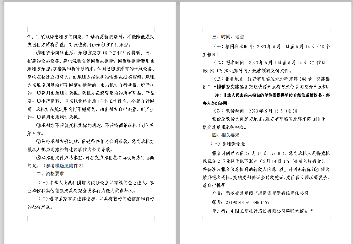 交通資源開發(fā)公司雨名快速通道(名山服務(wù)區(qū))2、3號樓商鋪招租公告附件