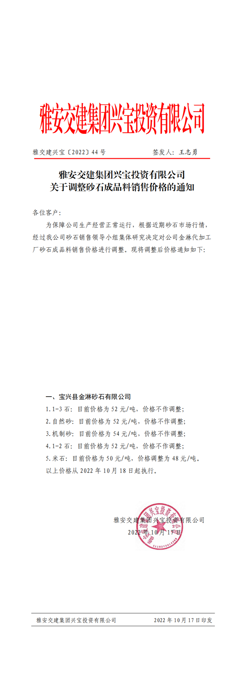 ÑŽ»½¨ÅdŒš¡²2022¡³44Ì– êPÓÚÕ{Õûɰʯ³ÉÆ·ÁÏäNÊÛƒr¸ñµÄ֪ͨ10.17